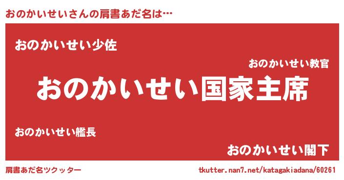 | 欧米人風あだ名 | 『おのかいせいクリステル』 |