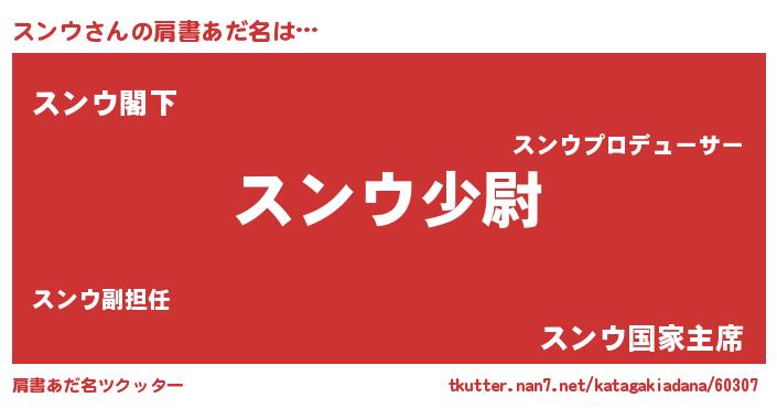 | ヘコむあだ名 | 『牛乳』『スンウ(笑)』『スンを』 |