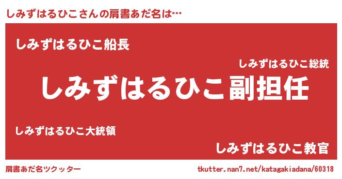 | 意味不明あだ名 | 『永久保存しみずはるひこ』 |