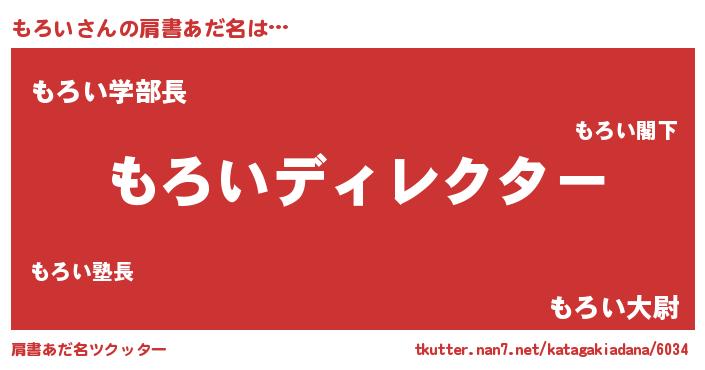 | 女子向けラノベタイトル風あだ名 | 『横柄もろいと宰相陛下』『もろい恋絵巻』 |