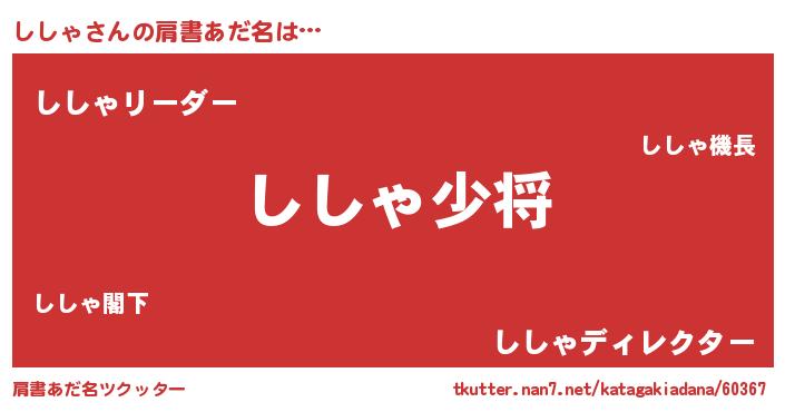 | ヒーロー風カッコイイあだ名 | 『魔戒騎士シシ』『最強戦士シシャ』 |