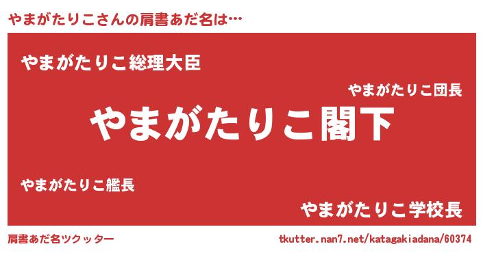 | 男性向けラノベタイトル風あだ名 | 『Re:やまがたりこから始める異世界生活』 |