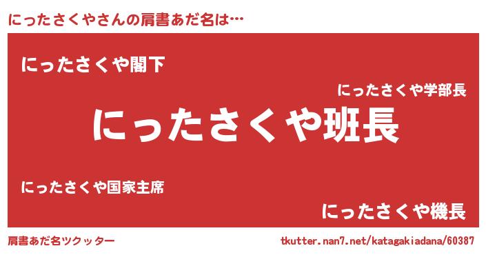 | 男性向けラノベタイトル風あだ名 | 『にったさくやの嫁は女の子じゃないと思った?』 |