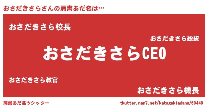 | ヒーロー風カッコイイあだ名 | 『スーパーオサダキサラ』『仮面オサダー』 |