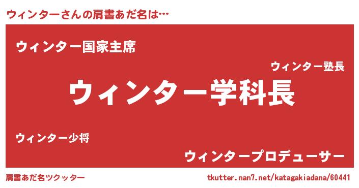 | 男性向けラノベタイトル風あだ名 | 『おまえをオタクにしてやるから、俺をウィンターにしてくれ! 』 |