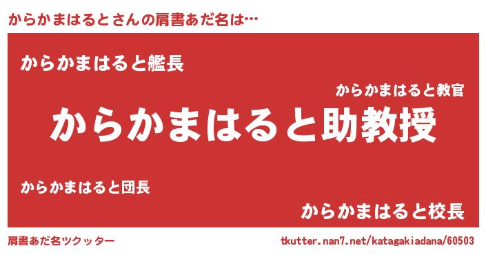 | ヘコむあだ名 | 『からかまはると(笑)』『からっ子』 |