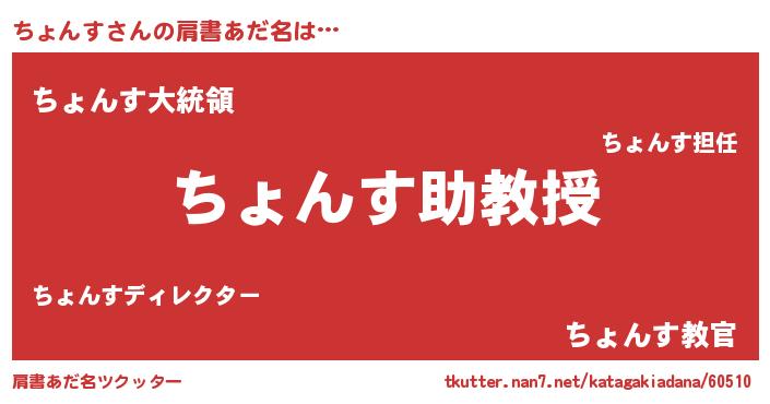 | 女子向けラノベタイトル風あだ名 | 『ちょんす恋絵巻』『ちょんす伯爵の花嫁』 |