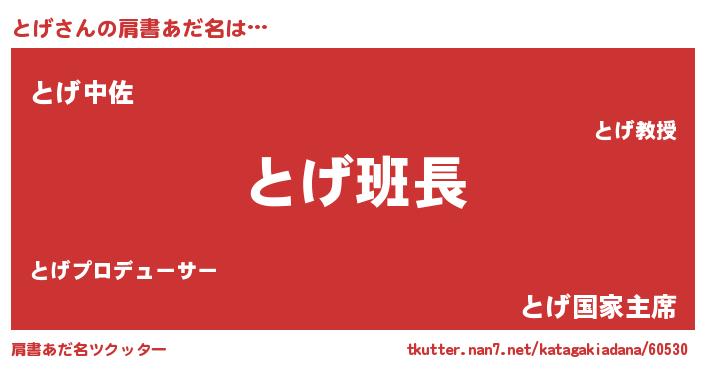 | ヒーロー風カッコイイあだ名 | 『暗黒騎士トゲ』『ウルトラとげマン』 |