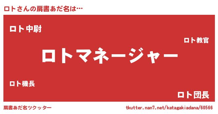 | 意味不明あだ名 | 『もやし科ロト属』『とにかく怪しいロト』 |