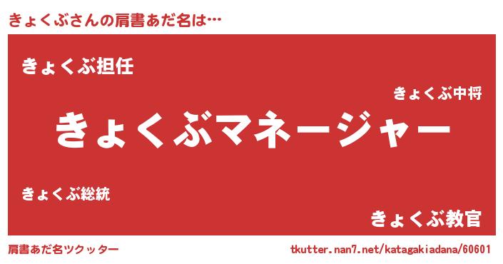 | ヒーロー風カッコイイあだ名 | 『ネオキョクブ』『仮面キョダー』 |
