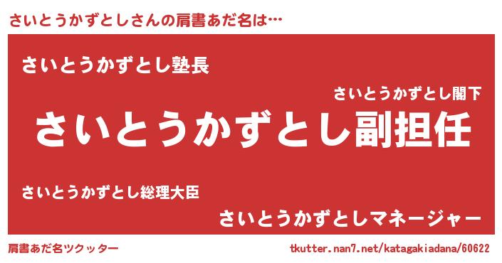 | 意味不明あだ名 | 『永久保存さいとうかずとし』 |