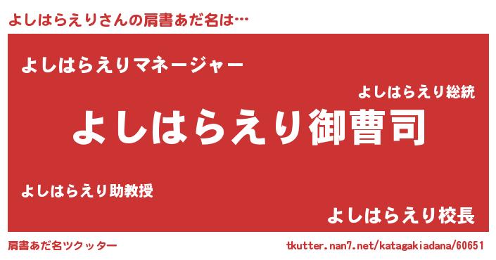 | 胡散臭い通販商品みたいなあだ名 | 『必ず成功する霊験あらたかなお札…その名も「よしはらえり」』 |