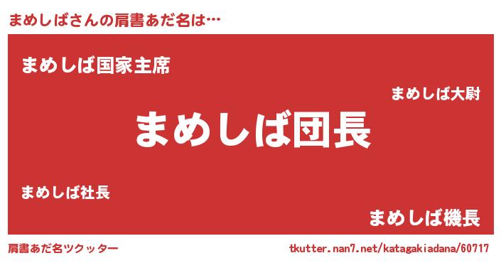 | 意味不明あだ名 | 『とにかく怪しいまめしば』 |