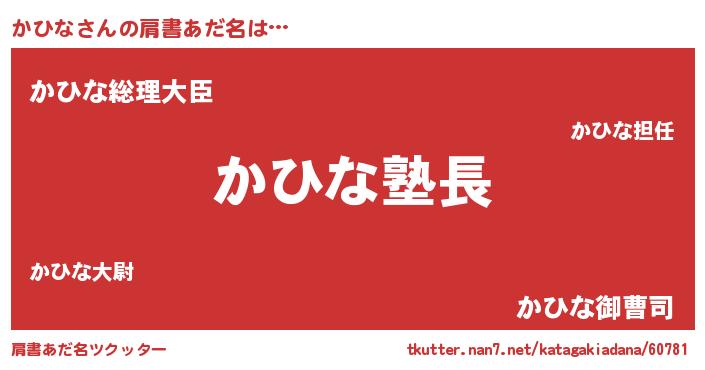 | ヒーロー風カッコイイあだ名 | 『幻影騎士カヒ』『ウルトラかひなマン』 |