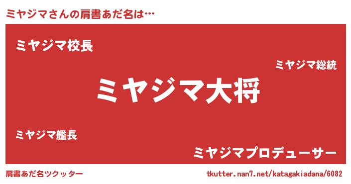 | 男性向けラノベタイトル風あだ名 | 『ミヤジマスレイヤー』 |
