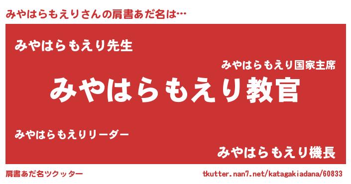 | ヘコむあだ名 | 『みやはらもえり(小並感)』『豆乳』 |