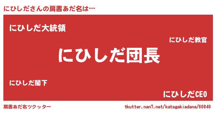 | 意味不明あだ名 | 『とにかく怪しいにひしだ』 |