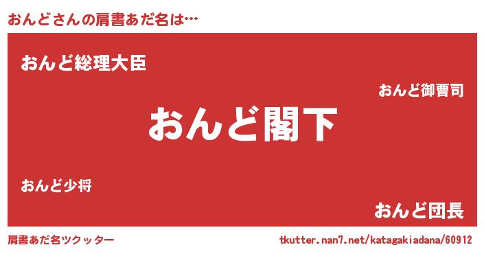 | 男性向けラノベタイトル風あだ名 | 『Re:おんどから始める異世界生活』 |