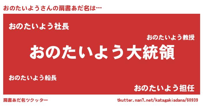 | 女子向けラノベタイトル風あだ名 | 『おのたいようの雑貨屋さん』 |