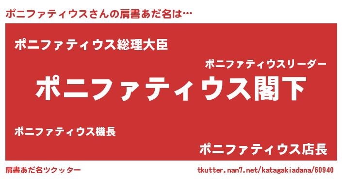 | 女子向けラノベタイトル風あだ名 | 『闇のポニファティウス』 |