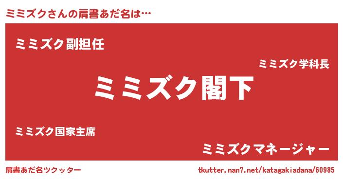 | 意味不明あだ名 | 『自称ミミズク』『永久保存ミミズク』 |