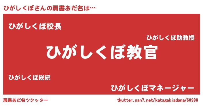 | 男性向けラノベタイトル風あだ名 | 『この素晴らしい世界にひがしくぼを!』 |