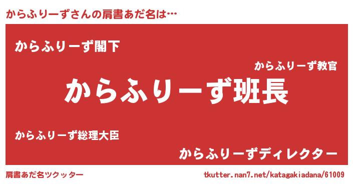 | 男性向けラノベタイトル風あだ名 | 『からふりーずの嫁は女の子じゃないと思った?』 |