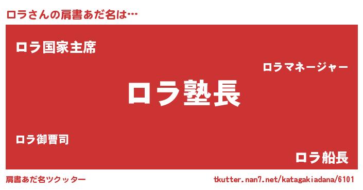 | 女子向けラノベタイトル風あだ名 | 『ロラ様がみてる』『ロラ伯爵の花嫁』 |