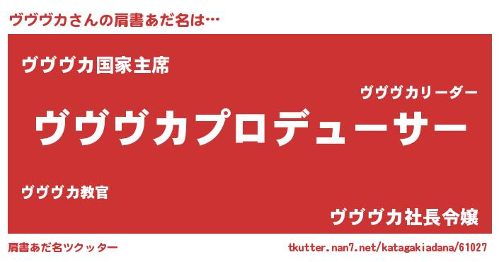 | 男性向けラノベタイトル風あだ名 | 『はたらくヴヴヴカさま!』 |