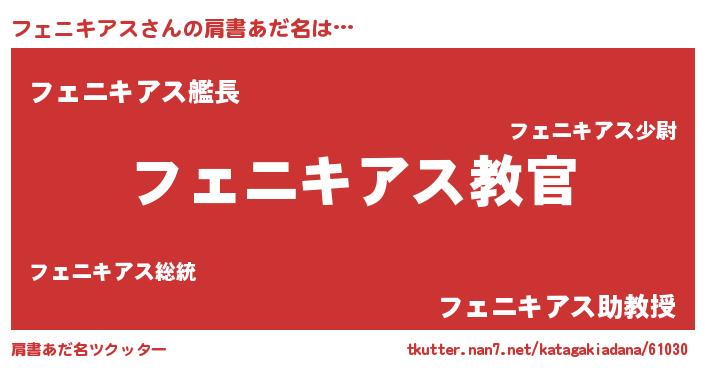 | 男性向けラノベタイトル風あだ名 | 『この素晴らしい世界にフェニキアスを!』 |