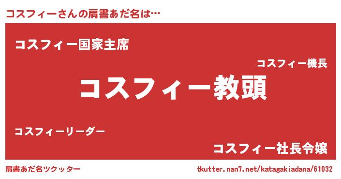 | ファンタジー風あだ名 | 『コスディッシュ』『コスフェル』 |