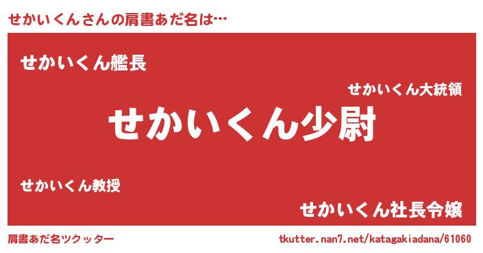 | 男性向けラノベタイトル風あだ名 | 『セカイクンスレイヤー』 |