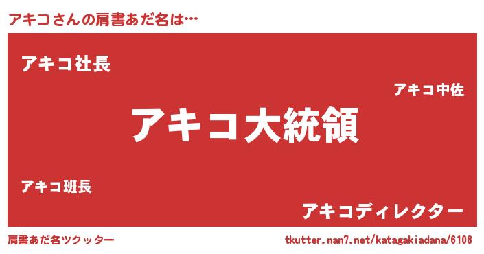 | 女子向けラノベタイトル風あだ名 | 『アキコの婚約者』『アキコ様がみてる』 |