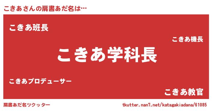 | ヒーロー風カッコイイあだ名 | 『慈愛の使者こきあ』『銀牙騎士コキ』 |