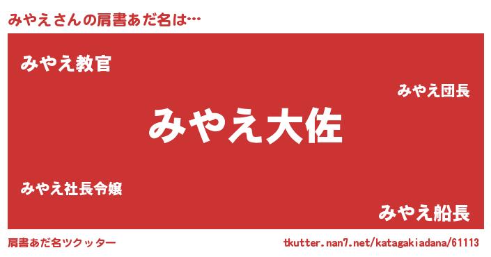 | ポケモン風あだ名 | 『ミヤキング』『ミーヤイ』 |