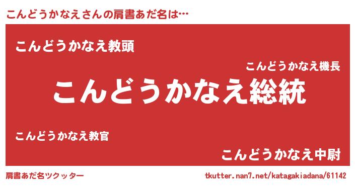 | 意味不明あだ名 | 『自称こんどうかなえ』 |