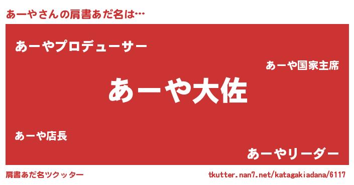 | 男性向けラノベタイトル風あだ名 | 『アーヤスレイヤー』『あーやの憂鬱』 |
