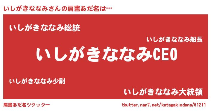 | 胡散臭い通販商品みたいなあだ名 | 『必ず成功するブレスレット…その名も「いしがきななみ」』 |