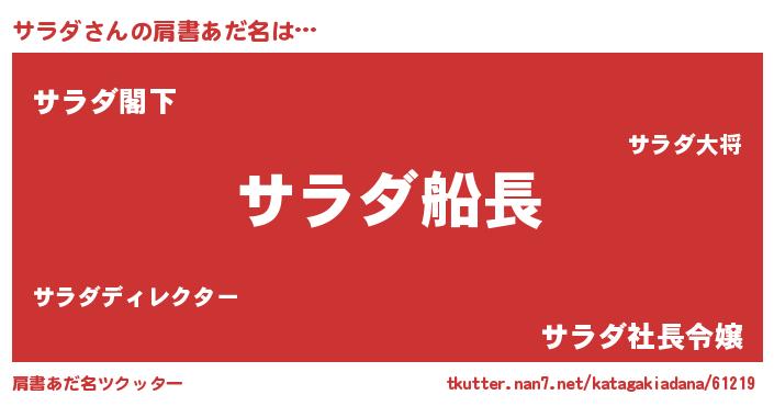 | 欧米人風あだ名 | 『サラダ・ステッグマイヤー』 |