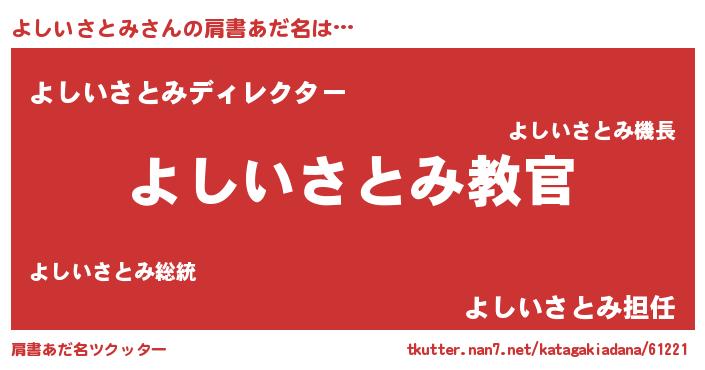 | 意味不明あだ名 | 『住所不定無職よしいさとみ(89歳)』 |