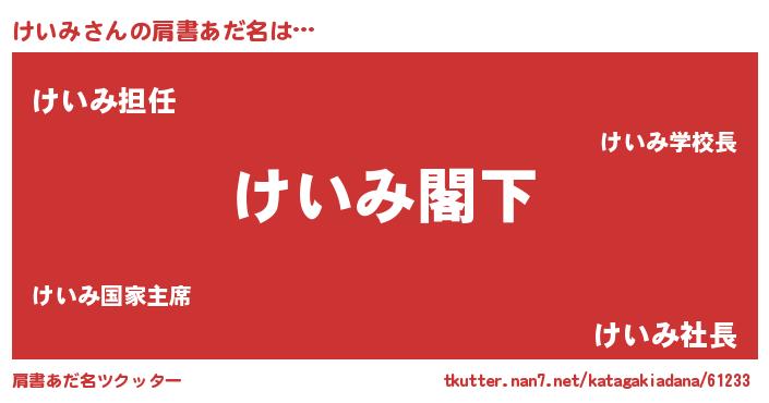 | 意味不明あだ名 | 『自称けいみ』『永久保存けいみ』 |