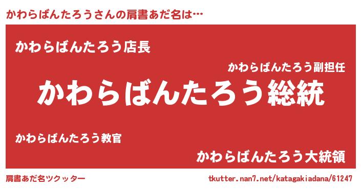 | 意味不明あだ名 | 『自称かわらばんたろう』 |