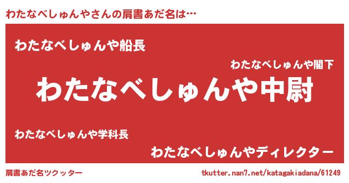 | 意味不明あだ名 | 『ニラ科わたなべしゅんや属』 |