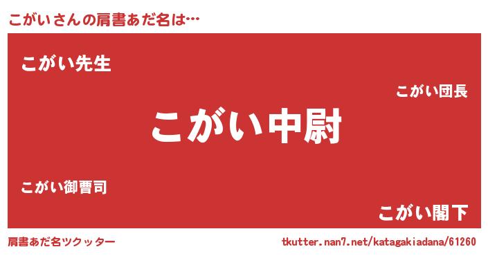 ヘコむあだ名 | 『こがい(笑)』『こがを』『こがにー』 |