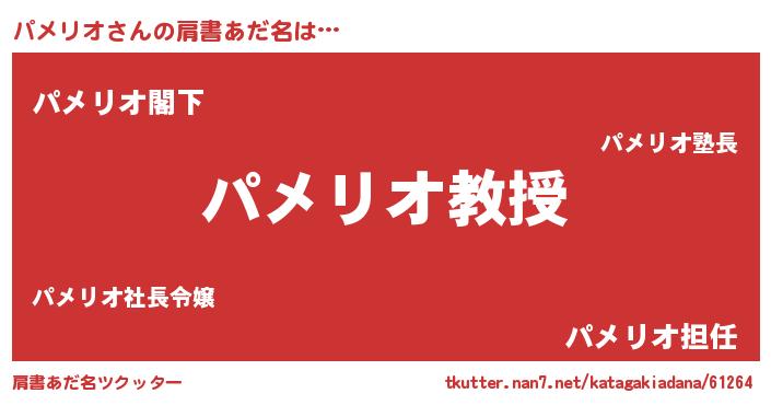 | ヒーロー風カッコイイあだ名 | 『慈愛の使者パメリオ』『ネオパメリオ』 |