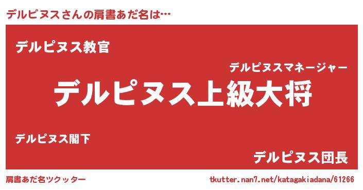 | ヘコむあだ名 | 『デルぷりん』『デルピヌス(震え声)』 |