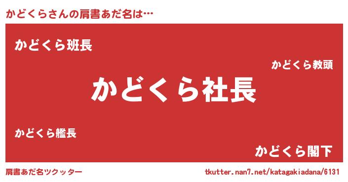 | 男性向けラノベタイトル風あだ名 | 『かどくらの憂鬱』 |
