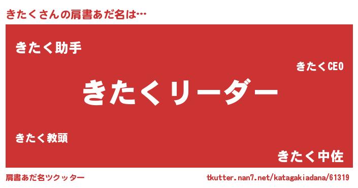 | ヒーロー風カッコイイあだ名 | 『天弓騎士キタ』『慈愛の使者きたく』 |