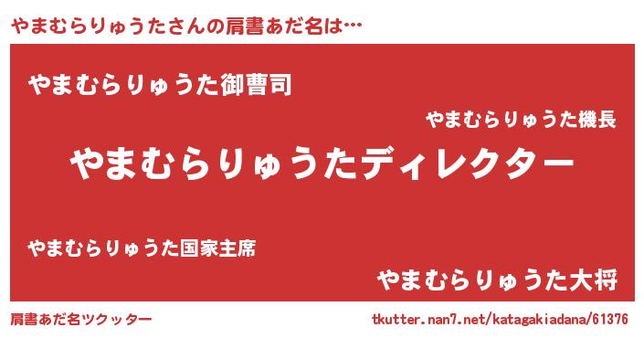 | 男性向けラノベタイトル風あだ名 | 『はたらくやまむらりゅうたさま!』 |