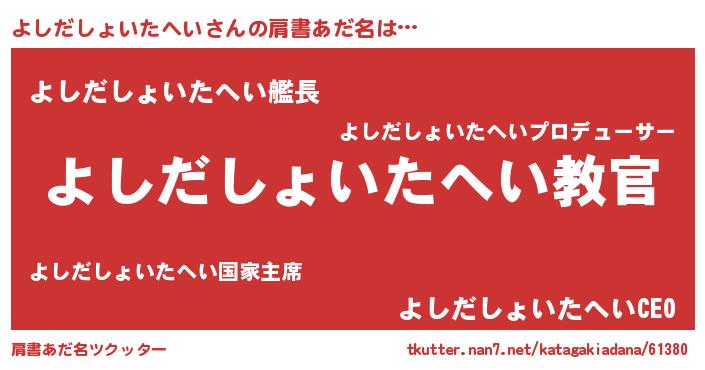 | 欧米人風あだ名 | 『ダレノガレよしだしょいたへい』 |